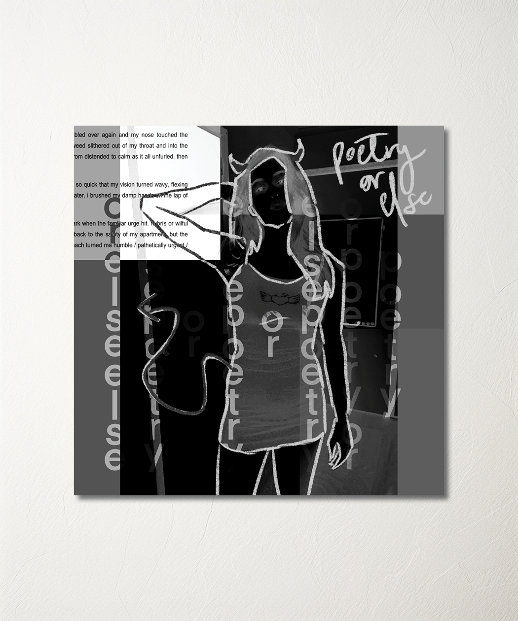 This one is an interesting one! The way it plays with many different visual elements, from your classic poetry writing to avant-garde vertical written words and the different ways emmy is portrayed, from realistically to the drawing format! It really is a fascinating piece of art that is hard to overlook!